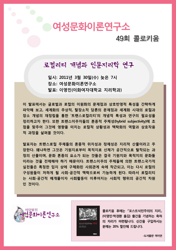 | [제48회 콜로키움] 페미니즘 이후의 문학읽기 (0) | 2019.05.22 |