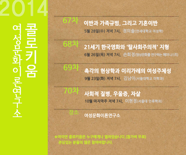 | [제65차 콜로키움] 페미니즘과 이주연구 : 방법론적 네쇼날리즘을 넘어서 (0) | 2019.05.23 |