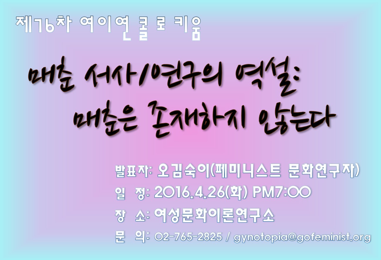 [제76차 콜로키움] 매춘 서사/연구의 역설: 매춘은 존재하지 않는다
