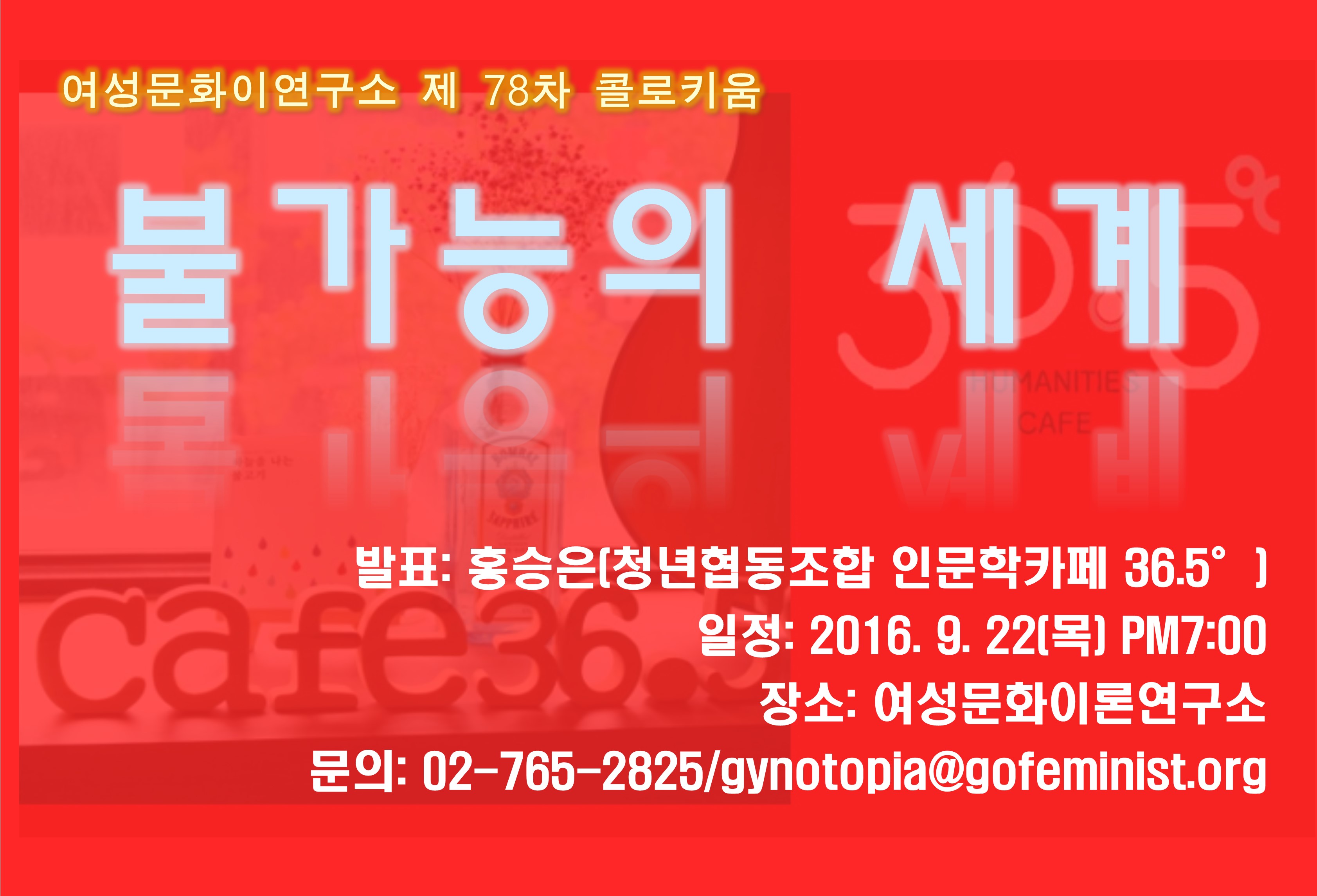 | [제80차 콜로키움] 포스트-메갈 시대의 페미니즘과 송년회 (0) | 2019.05.27 |