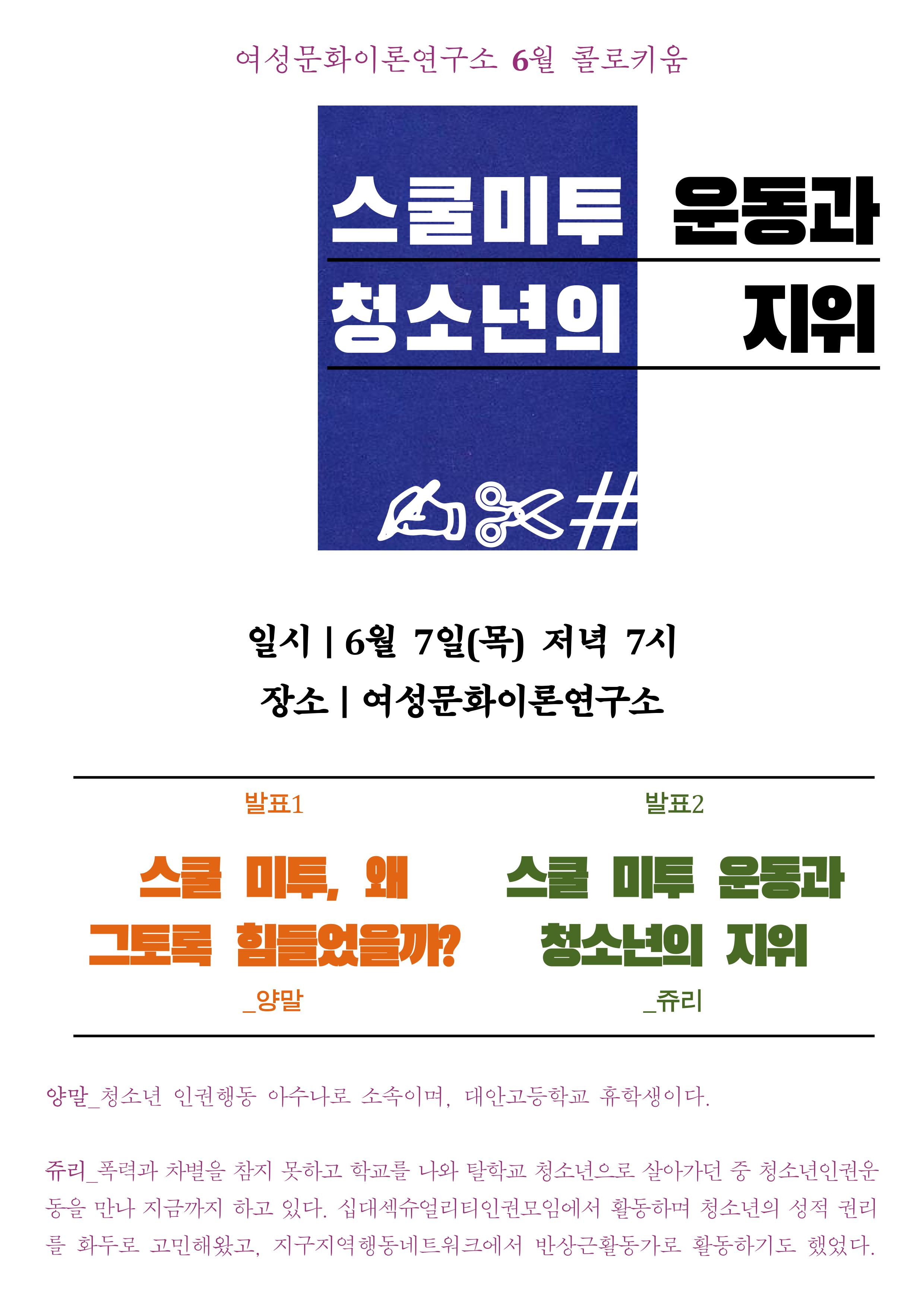 [제84차 콜로키움] 스쿨미투 운동과 청소년의 지위