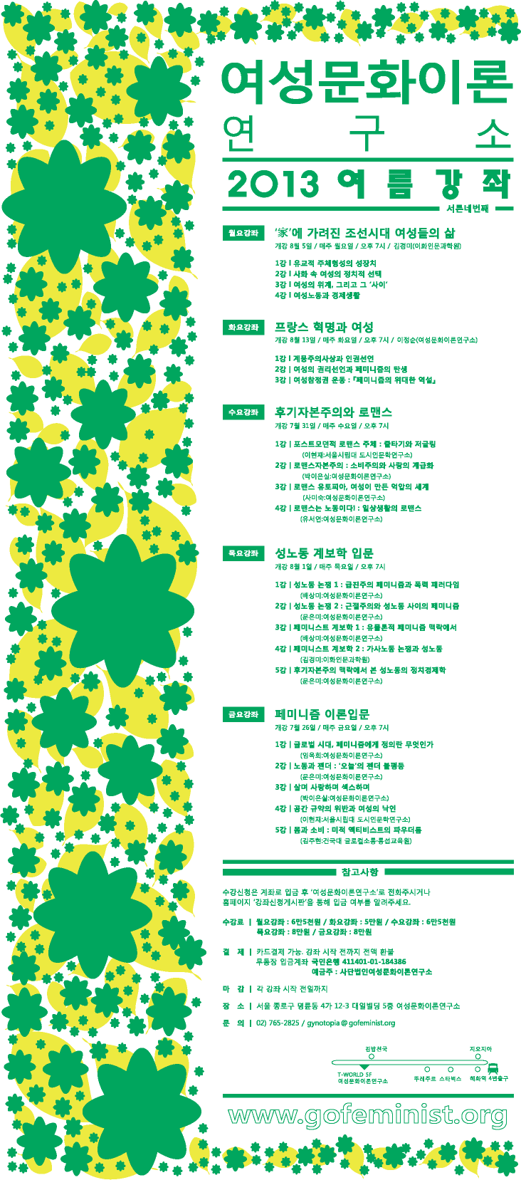 | 2013년 여성문화이론연구소 하반기 지독 강좌 (0) | 2019.06.12 |