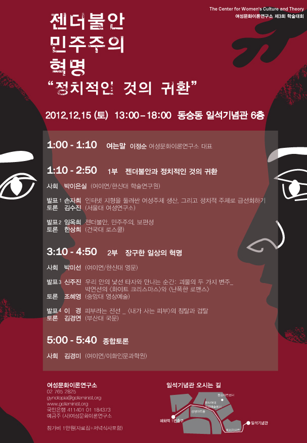 | 2015년 제6회 학술대회 <퇴행의 시대: 페미니즘을 급진화하기> (0) | 2019.08.05 |