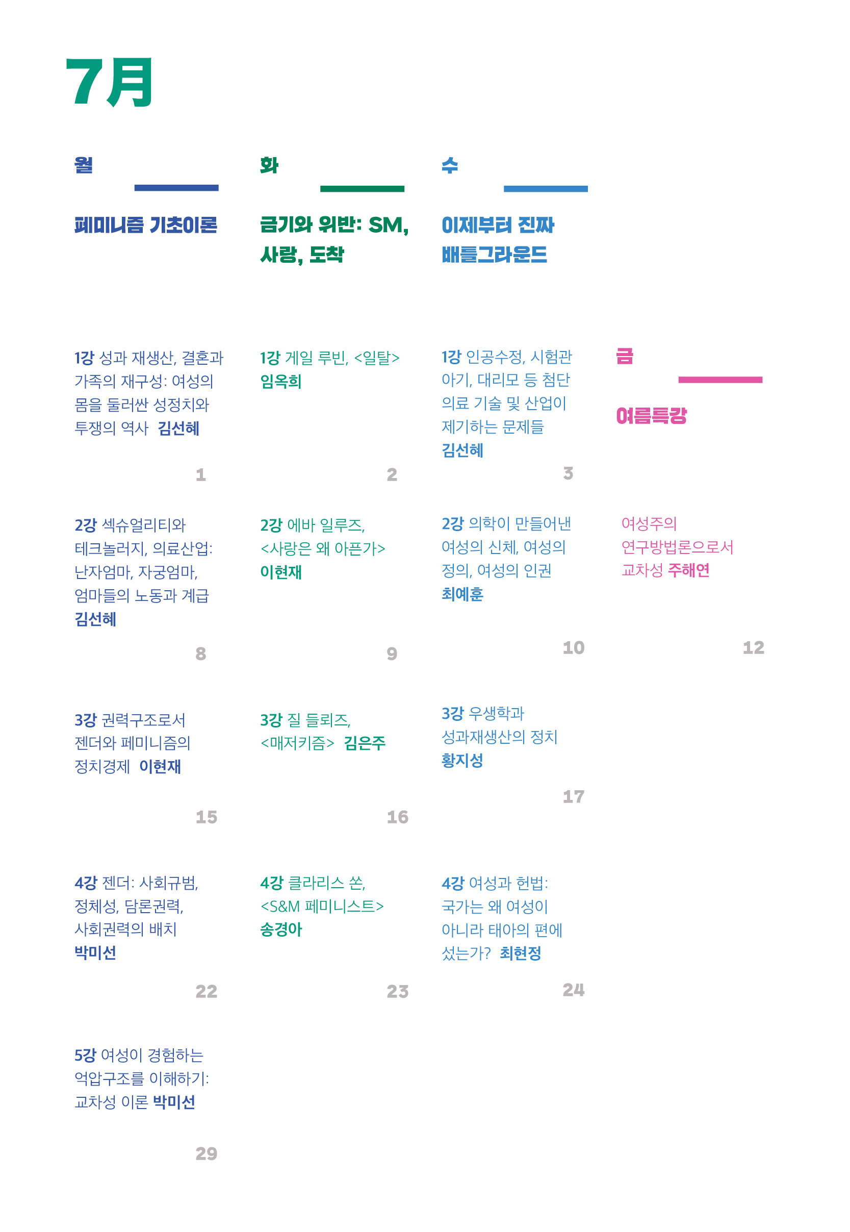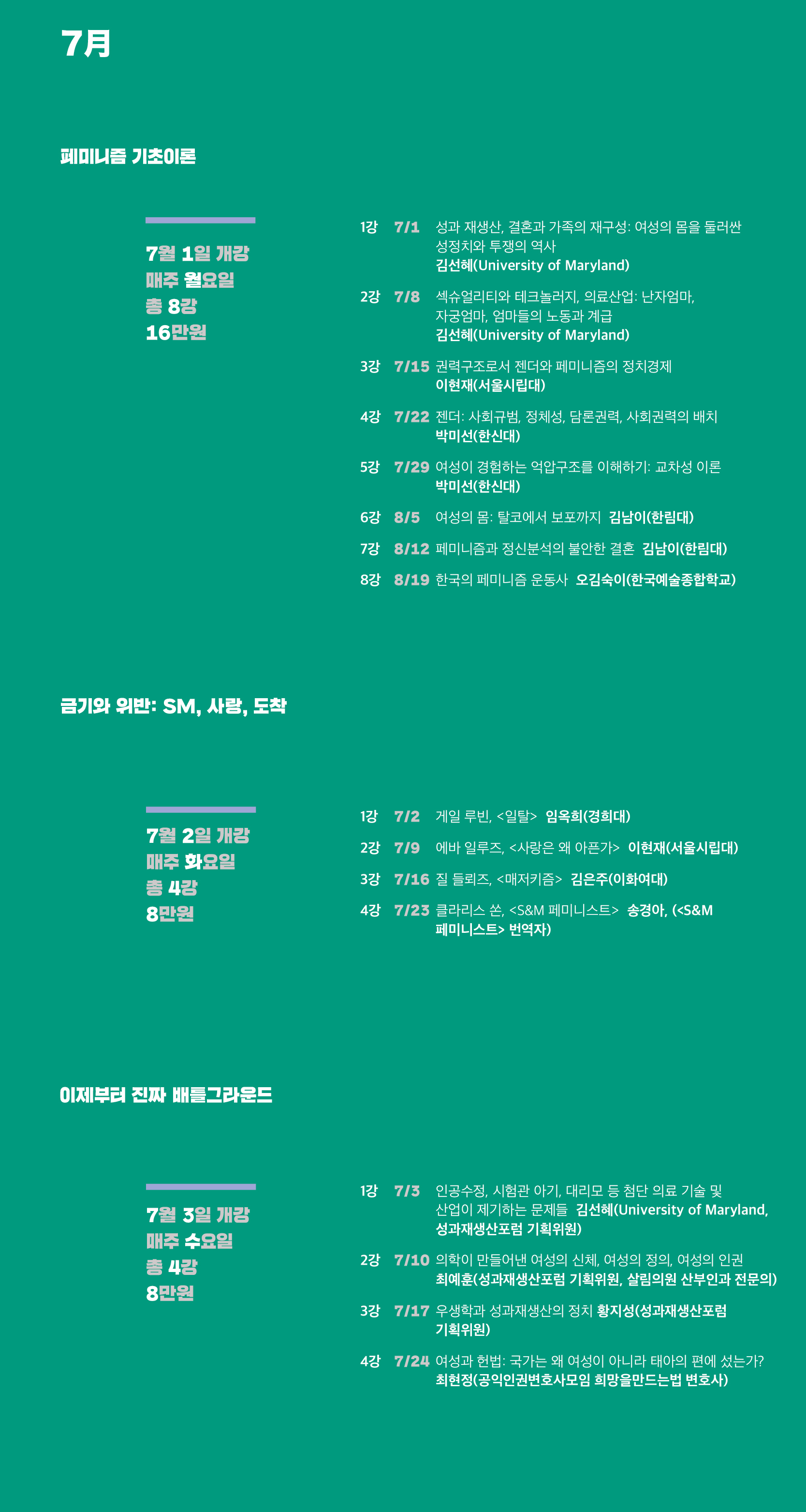 여성문화이론연구소 46번째 여름강좌가 7월 1일부터 다시 시작합니다.