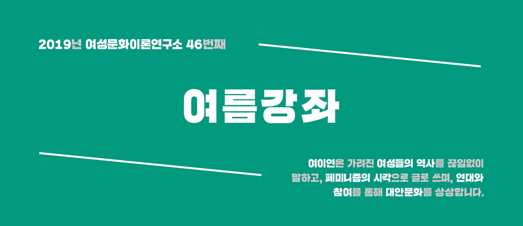 여성문화이론연구소 46번째 여름강좌가 7월 1일부터 다시 시작합니다.