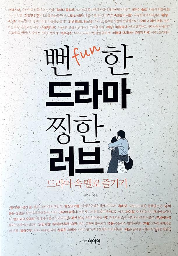 | 1부 사랑 뻔fun한 거잖아? 연애시대 - 습관처럼 되돌아오는 사랑 얼마나 좋길래 - 로미오와 줄리엣의 사랑이 해피엔딩이라면? 굿바이 솔로 - 사랑이 외롭지 않다는 거짓말 장미빛 인생 - 나도 불륜을 꿈꾼다! 사랑과 야망 - 애증이 꽃피는 시대 이 죽일 놈의 사랑 - 사랑하다 죽어버려라 환생-넥스트 - 왜 운명적이고 비극적인 사랑을 꿈꿀까? 안녕하세요 하느님! - 하느님, 순수한 사랑이 전염될까요? 오버 더 레인 보우 - 질주하는 욕망, 흔들리는 사랑 소울메이트 - 소울메이트를 만난다는 건 기적일거야 웨딩, 비밀남녀 - 결혼하고 사랑하면 안 될까?, 프라하의 연인 - 사랑에는 전략이 필요해 루루공주 - 공주의 사랑도 별 볼일 없네 뭐 이별에 대처하는 우리의 자세 - 사랑, 삼각에서 사각관계로 발리에서 생긴 일 - 멜로드라마에서 생긴 일 2부 뻔뻔fun한 여자가 사랑을 할 때 환상의 커플 - 미워할 수 없는 왕싸가지 그녀 황진이 - 모질고도 독한, 물색없는 년 내 이름은 김삼순 - 삼순이의 육탄 돌격, 아자! 여우야 뭐하니 - 서른 셋 그녀의 도발이 맥 빠지는 이유 마이걸 - 주유린의 사기행각에 놀아나다 돌아와요 순애씨 - 억세게 운 좋은 그녀의 일탈 패션 70s - 욕망의 여자들 궁 - 궁에 갇힌 소녀, 억압과 자유의 이중주 굳세어라 금순아 - 굳세어라 싱글맘 드라마 속 여성 캐릭터들의 진화 3부 고개 들 뻔Fun한 남자의 사랑 신입사원, 무적의 낙하산 요원 - 백수, 유쾌한 영웅 되기 주몽 I - 주몽과 두 명의 아버지 부활 - 고독한 절대영웅의 부활 불량주부 - 남자, 아줌마 되다 달콤한 스파이 - 카리스마가 무너질 때의 코믹 에너지 해신 - 글로벌 시대의 남성영웅 판타지 서동요 - 서동은 과연 세상을 구원할 수 있을까? 제5공화국 - 태생적 한계 혹은 잉여적 매혹 주몽 II - 주몽은 어떻게 선악의 낡은 틀에 갇혔나? 봄날 - 약한 자여 그대 이름은 남자 4부 드라마가 달라지고 있다 드라마 속 멜로가 달라지고 있다 임성한의 드라마 세계 : 복수와 보상의 변증법 연속극의 '출생의 비밀' 코드 드라마 보는 남자가 늘고 있다 |