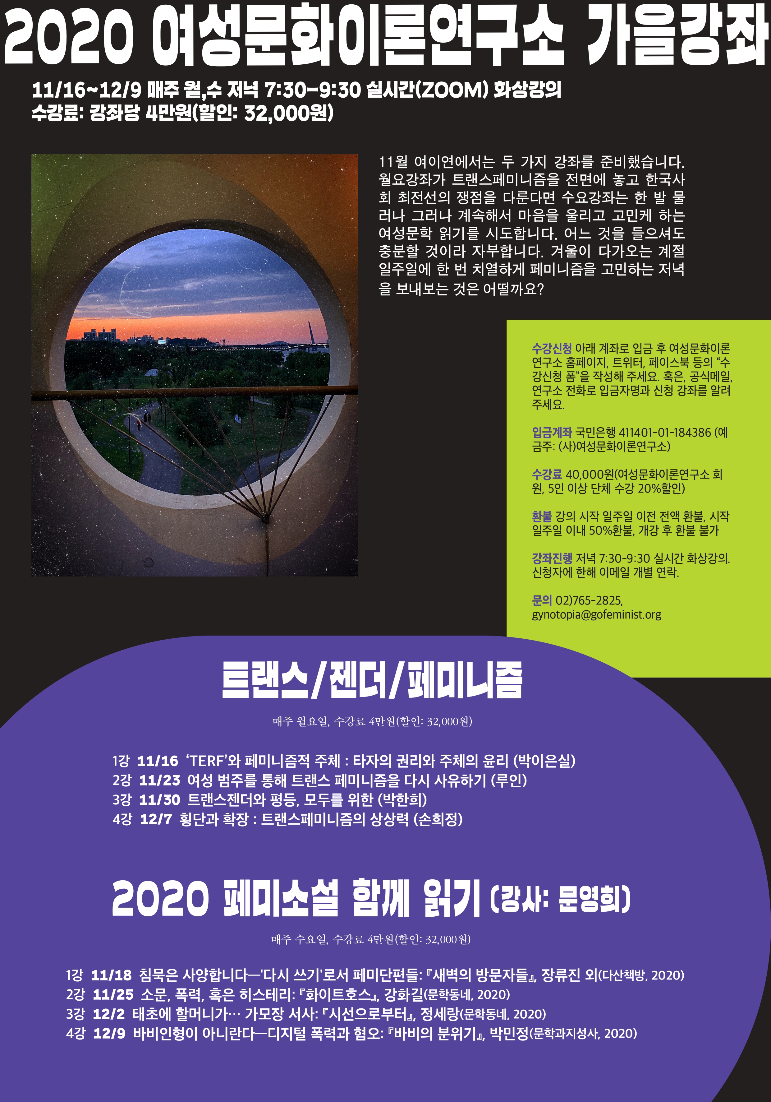 | 2020년 여성문화이론연구소 52번째 10월 강좌 (0) | 2021.09.30 |