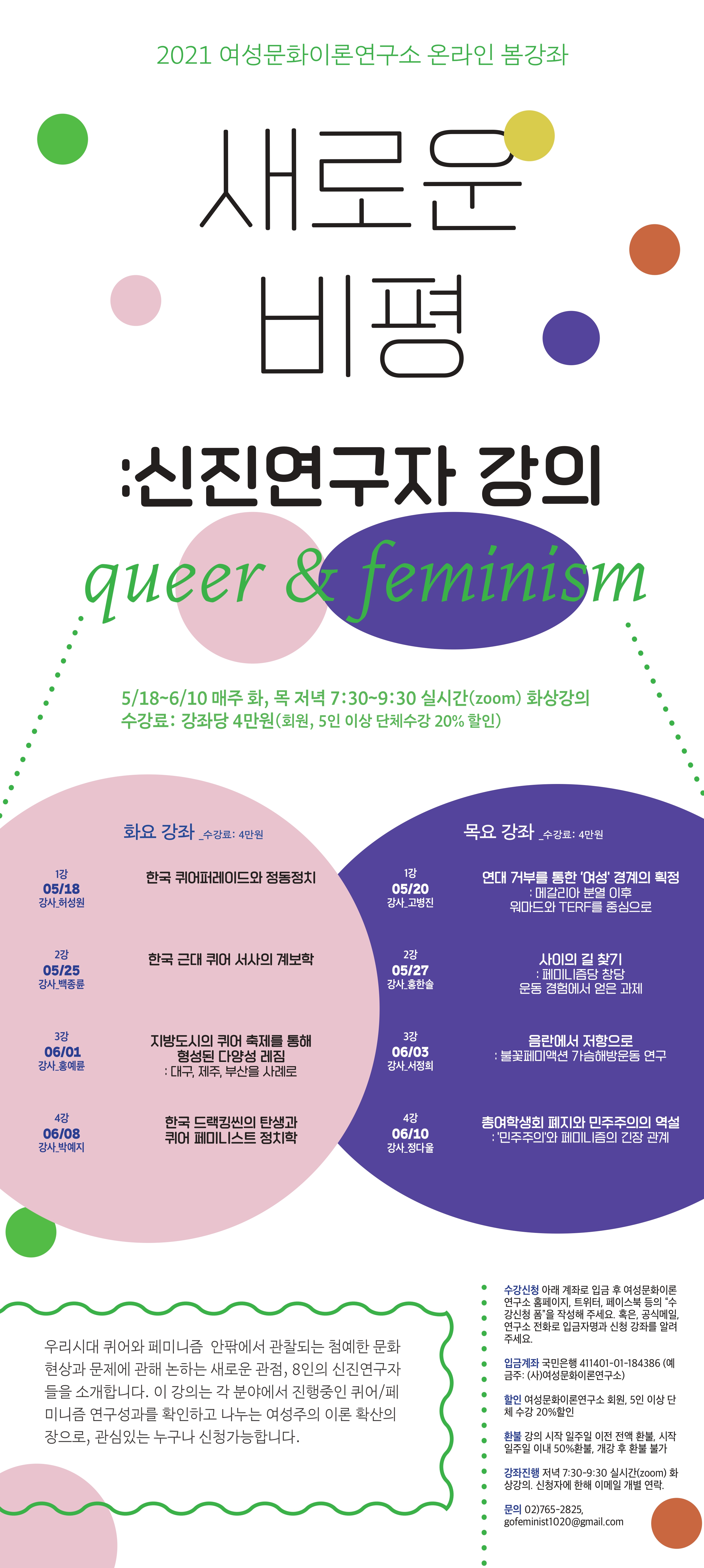 | 2021년 여성문화이론연구소 56번째 여름강좌 (0) | 2021.09.30 |