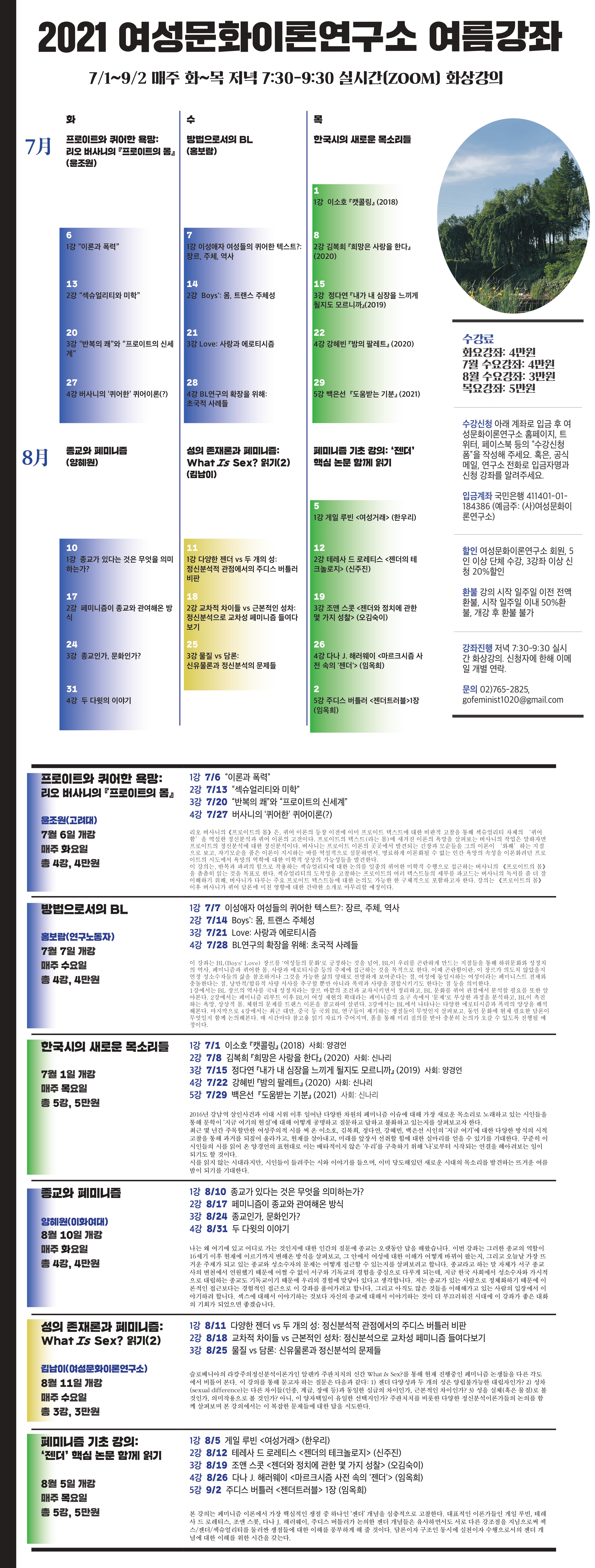 | 2021년 여성문화이론연구소 54번째 겨울강좌 (0) | 2021.09.30 |