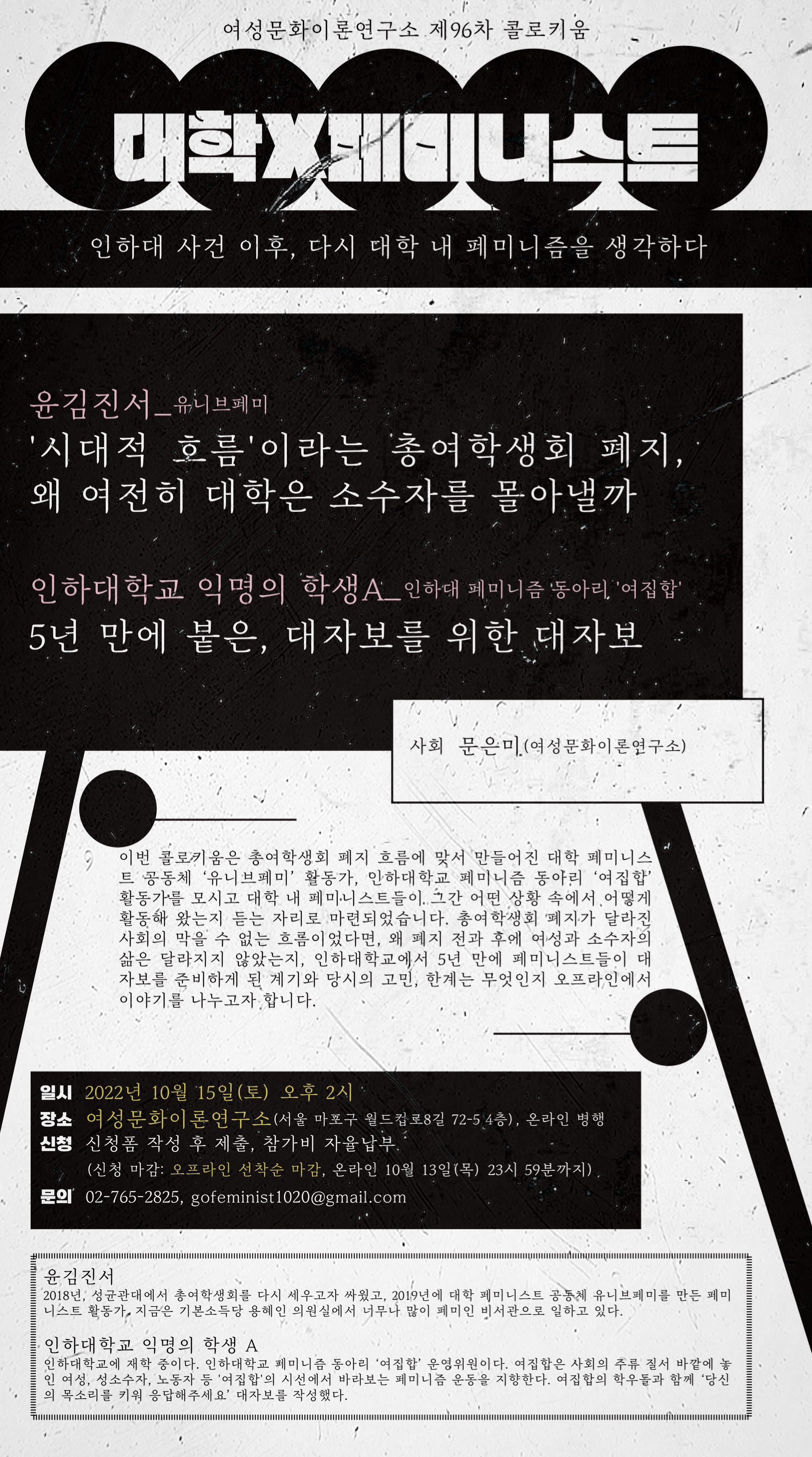 ● 문의: 02-765-2825, gofeminist1020@gmail.com