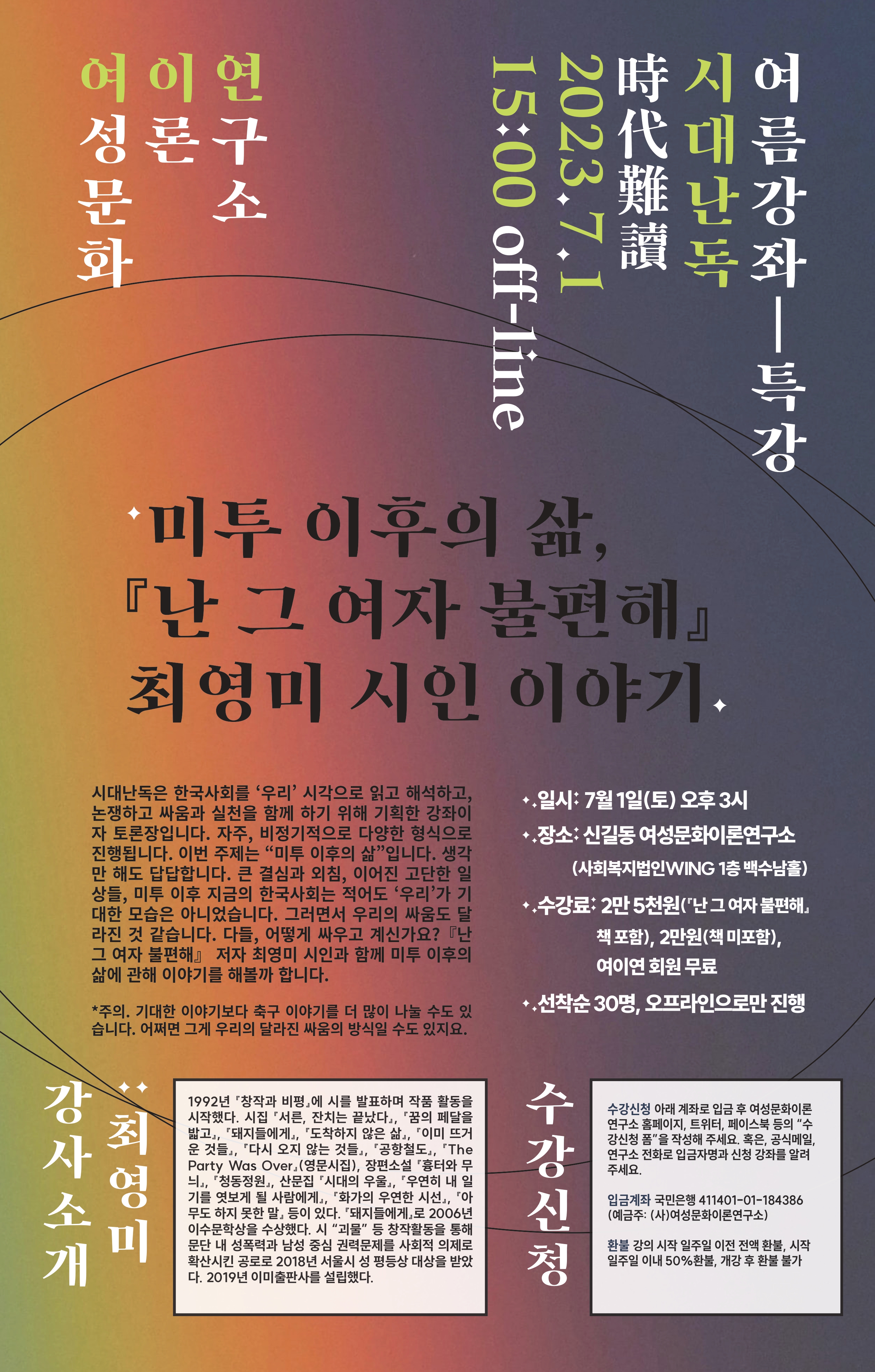 | 2023 여성문화이론연구소 61번째 여름강좌 (0) | 2023.06.16 |