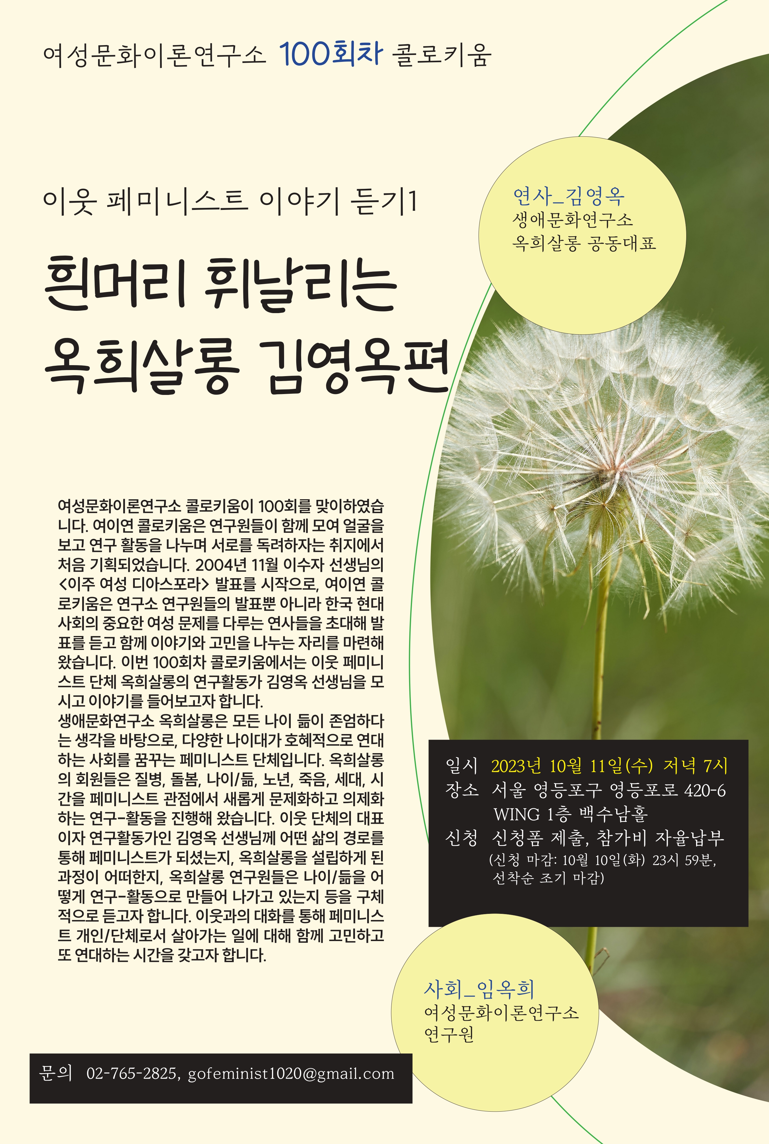 | [101회차 콜로키움]"이웃 페미니스트 이야기 듣기②: 최현숙편" (0) | 2023.10.23 |