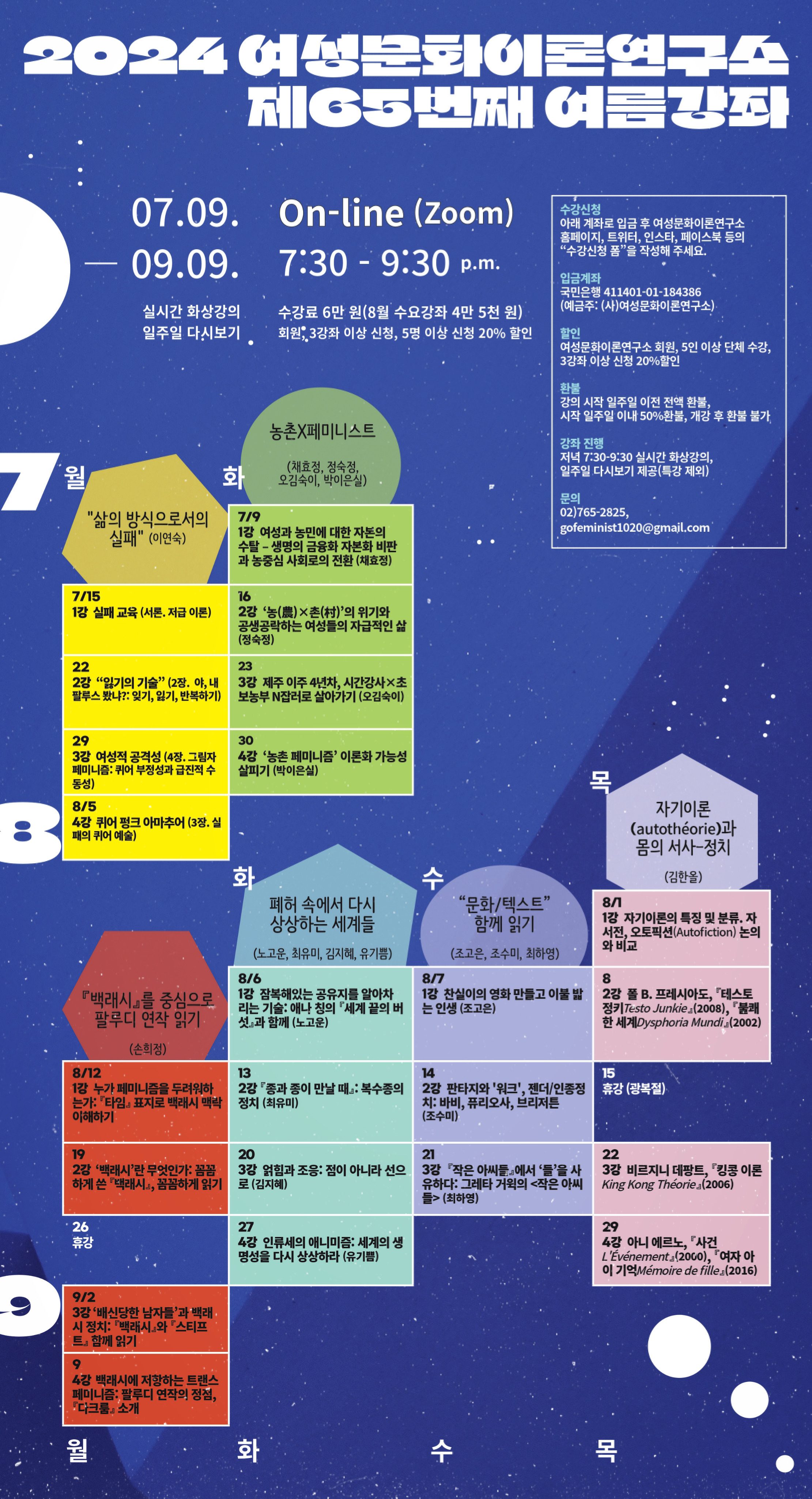 | 2024 여성문화이론연구소 66번째 가을강좌 (7) | 2024.10.23 |