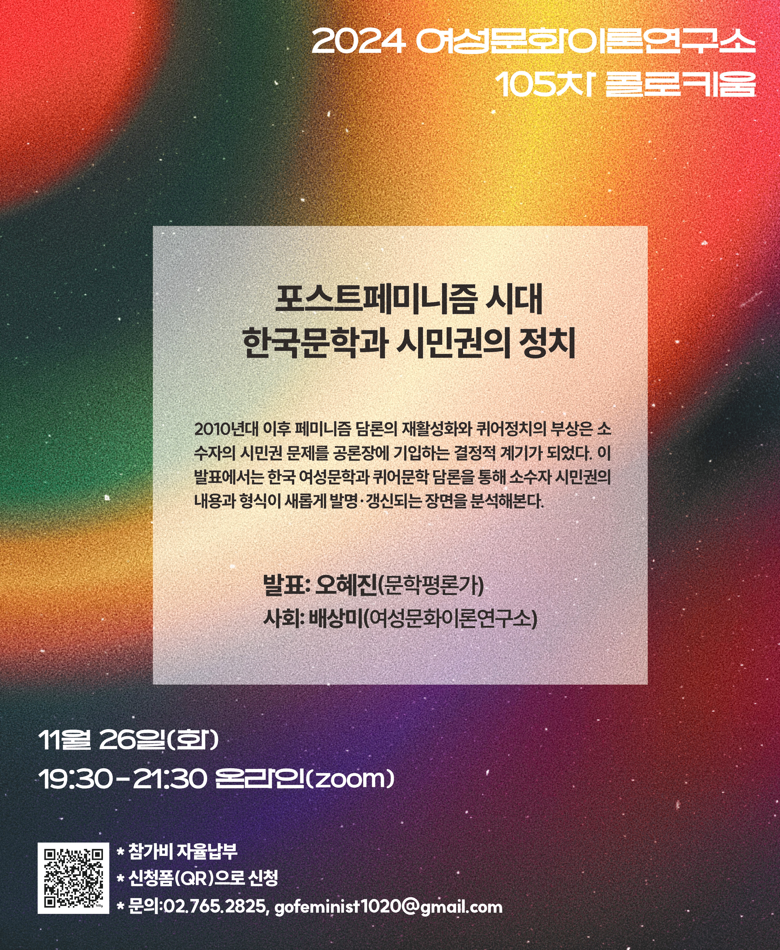 | [106차 콜로키움] 몸의 질문, 질문의 몸 (0) | 2025.05.08 |
