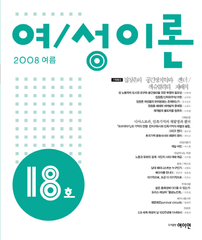 여/성이론 18호의 기획특집인 <집창촌의 공간정치학과 젠더/섹슈얼리티 재배치>는 기존 공간문법의 재전유 문제를 조명하려는 의도로 기획되었다. 촛불집회가 공간의 문법을 바꾼 것처럼, 이번 호 특집은 집창촌과 같이 우리 사회에서 주변화되고 은폐된 곳이 지닌 젠더공간의 정치성을 찾아보고자 한다. 「집창촌 폐쇄와 재개발의 문제점」김경미 - 집창촌 재개발 사업은 "성특법을 만든 여성계나 여성부의 입장에서 보면 성매매 근절을 뜻하고, 지방자치단체의 입장에서 보면 도심 환경의 개선을 뜻하며, 집창촌은 토지나 건물 주인들의 입장에서 보면 개발이익을 뜻하며, 업주들에게는 보상을 뜻한다. 그러나 성노동자들의 입장에서 보면 일터가 없어지는 것"인 셈이다. 「성노동자의 도시권 요구와 공간생산을 위한 투쟁의 필요성」이현재 - 어쩔 수 없이 국가를 기준으로 할 수밖에 없는 시민권 대신에 앙리 르페브르의 '도시권' 개념을 가져옴으로써 매춘인들이 집창촌을 삶의 터전이자 삶의 양식을 위한 공간으로 재점유 할 수 있는 가능성을 탐색한다. 「집창촌/신자유주의/코뮌」손자희 - 매춘인들의 터전이었던 공간이 이제는 최고층 인텔리전트 빌딩이자 초국적 CEO들이 머물 수 있는 명품 공간이 된다. 필자는 결론적으로 집창촌이라는 '매춘의 지정학적인 공간'을 코뮌의 공간으로 만들어내자고 제안하고 있다. 「집창촌 여성들의 하위문화는 존재하는가」오김숙이 - 매춘여성에게 가해지는 사회적 낙인을 제거할 수 있는 새로운 시도로 매춘공간이 갖는 하위문화의 정치성과 저항성을 드러낸다. 「재개발의 불도저를 멈춰라」이희영 - 이 글은 짧지만 많은 말이 필요치 않은 삶의 언어이자 생존의 언어이며 현장의 언어이다. 성노동자의 입장에서 볼 때 성특법 발효 이후 집창촌 폐지가 성노동자들에게 무엇을 의미하는지 간명하게 전달하고 있다.